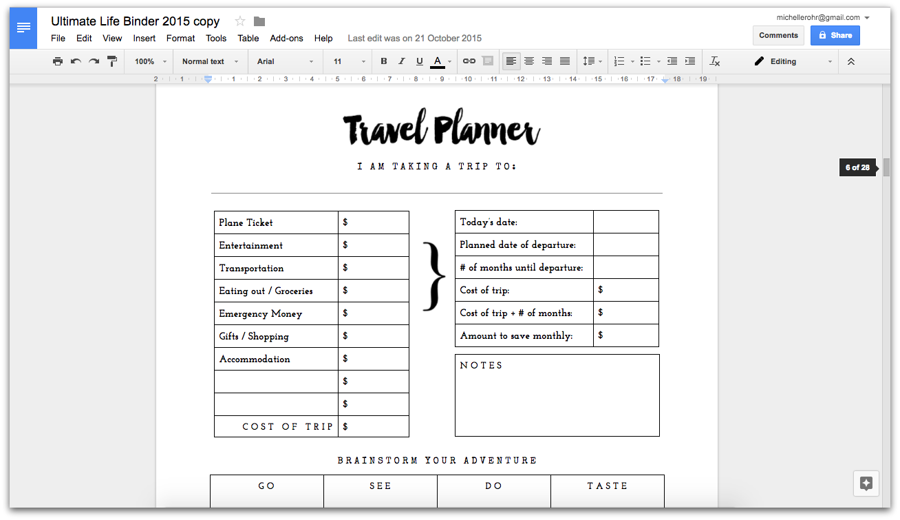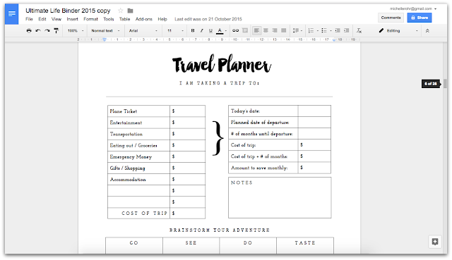 (Pic: A snapshot of designing the Ultimate Life Binder in Google Docs)